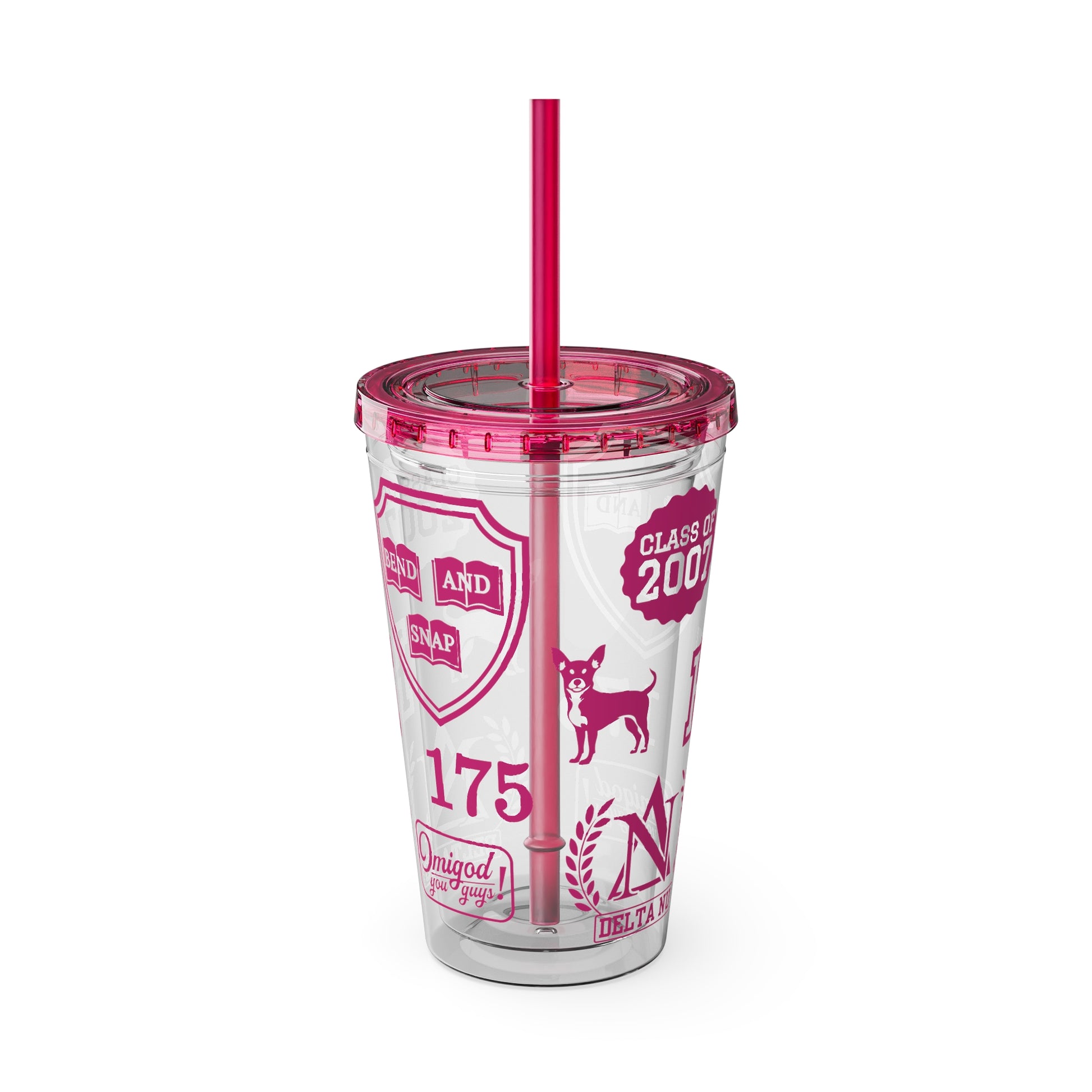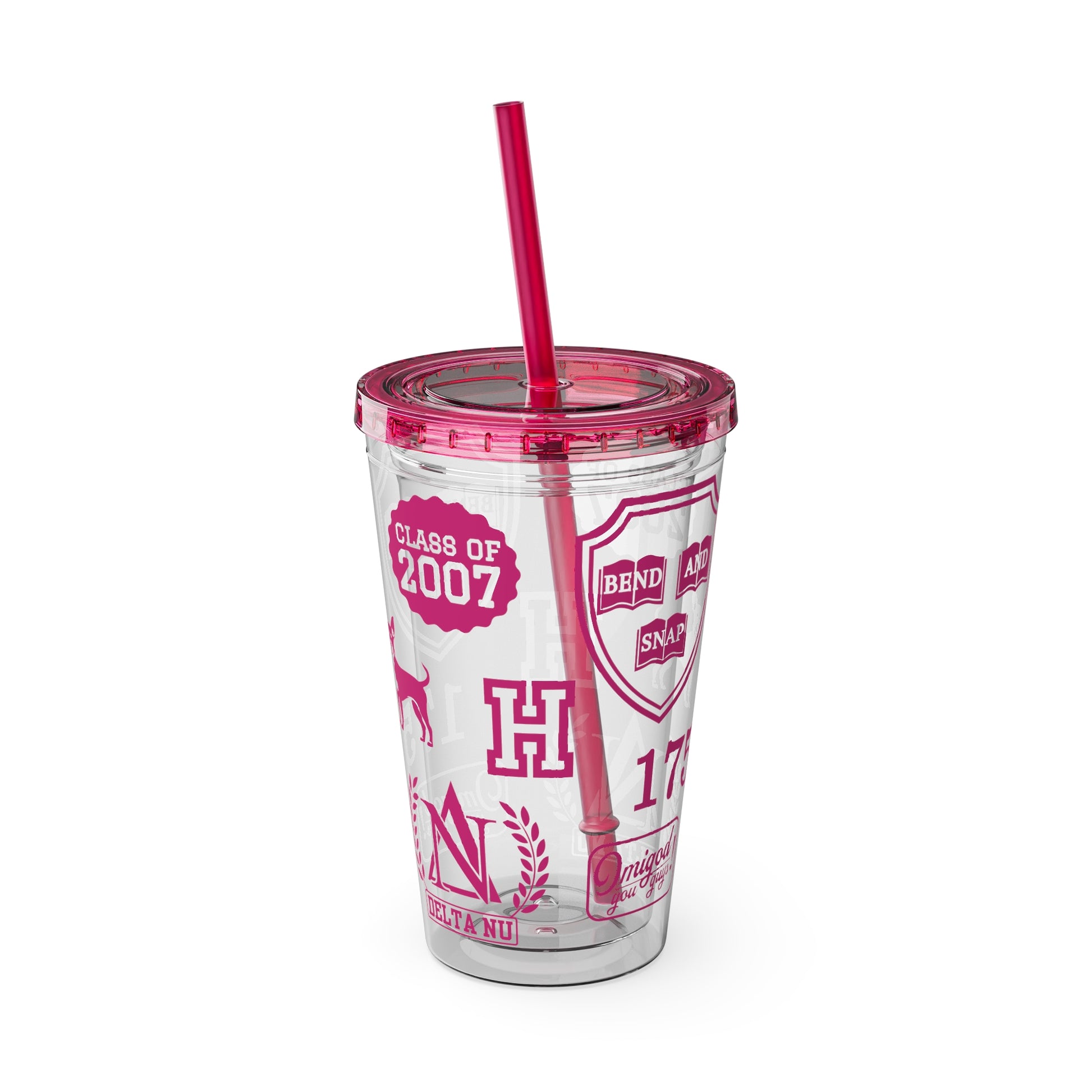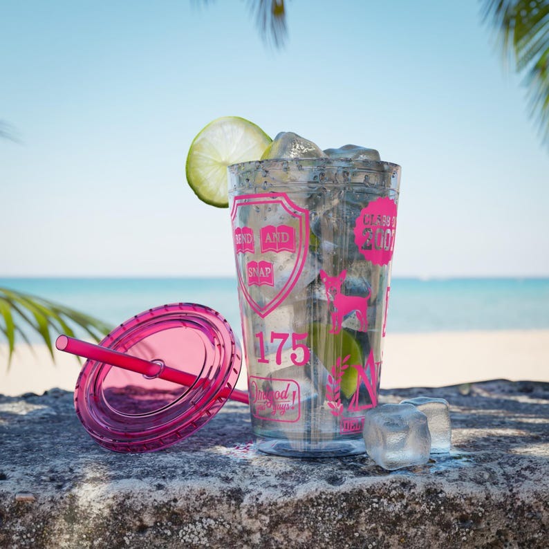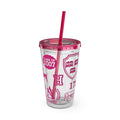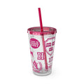 Legally Blonde inspired print plastic tumbler with coloured lid and matching straw